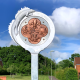 The Heart of Kerdroya’s design mirrors the landscape artwork labyrinth, the artwork incorporates channels for rainwater to gather and flow with a drainage point at the centre representing energy flow and all thing cycles into one. The entire artwork is made from three core metals a galvanised steel supporting structure forms the base of the artwork, this structure is hidden but provides the incredibly strong base for the Repoussé copper channels all hand beaten. The copper is secured in place by marine stainless steel capping layer which provides a beautiful clean metallic surface.